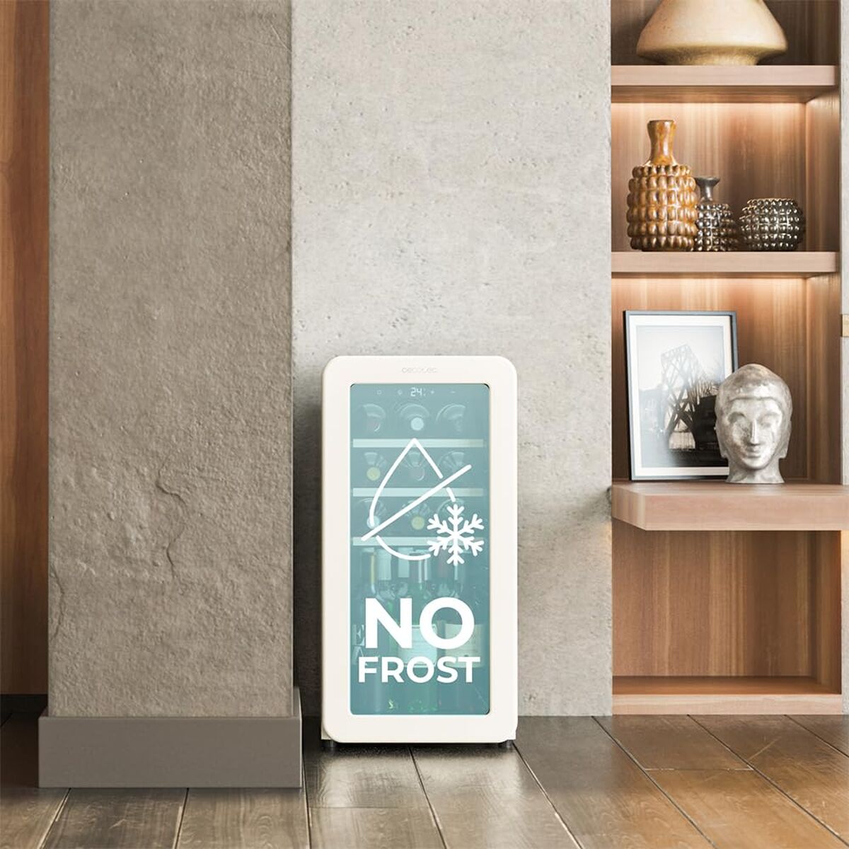 Vinkjøleren Cecotec Bolero GrandSommelier Origin 18 Hit rød er en temperert lagringsløsning for vin som kombinerer et retrodesign i rødt med egenskaper tilpasset krevende hjemmebruk. Den har en kapasitet på 18 flasker i et kompakt format på 74, 3 x 36, 6 x 47, 6 cm, noe som gjør den enkel å plassere som et på kjøkken, stue eller i underholdningssoner. Den har elektronisk temperaturkontroll via LED-display og berøringspanel, med et justerbart område mellom 5 °C og 20 °C, egnet for rødvin, hvitvin og musserende, slik at du kan tilpasse servering og lagring presist. Kjølesystemet med integrert kompressor, støttet av intern ventilasjon med vifte, holder en jevn temperatur og stabil luftfuktighet, og reduserer variasjoner som kan påvirke vinens egenskaper; i tillegg hindrer NoFrost-teknologi isdannelse på innsiden og bidrar til å opprettholde ytelsen over tid. Innvendig finnes 3 trehyller som lar deg organisere flaskene trygt og ryddig, og gir et varmere og mer elegant uttrykk enn vanlige metallhyller. Den er utstyrt med innvendig LED-belysning med lav varmeutvikling, som gir god oversikt uten å varme opp flaskene, og en glassdør som lar deg se innholdet og samtidig bevarer et gjennomført design. Enheten drives med 220 V, har stillegående drift på rundt 39 dB og er konstruert for effektiv bruk innenfor sin energiklasse, med klassifisering angitt mellom F og G i henhold til gjeldende regelverk. Cecotec Bolero GrandSommelier Origin 18 Hit rød er dermed et kompakt og funksjonelt valg for å lagre og organisere en middels stor vinsamling med presis temperaturkontroll og et særpreget utseende.