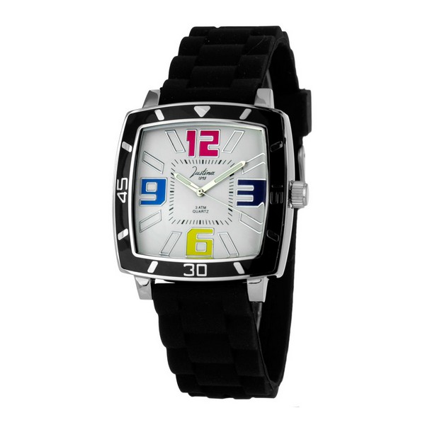 Justina unisex-klokke modell 21971 kombinerer allsidighet med et moderne design som passer til enhver stil og anledning. Den er laget med en balansert og funksjonell blanding av rustfritt stål og gummi, materialer som gir både holdbarhet og komfort i daglig bruk. Designet i hvitt og svart gir et sobert og elegant uttrykk, egnet for både menn og kvinner, og understreker klokkens unisex-karakter. Som en armbåndsur er den praktisk for de som ønsker et pålitelig og lettbært tilbehør uten tidsbegrensninger. Modellen har ingen ekstra lenker, noe som tyder på en justerbar og komfortabel gummirem, ideell for en ergonomisk passform uten komplikasjoner. Denne kombinasjonen av egenskaper gjør klokken allsidig og tilfredsstiller grunnleggende krav til presisjon og stil, samtidig som den er robust og behagelig. Alt i alt er Justina 21971 et balansert valg for brukere som verdsetter funksjonelt design og en produksjon som sikrer lang levetid i et universelt tilpasset format.
